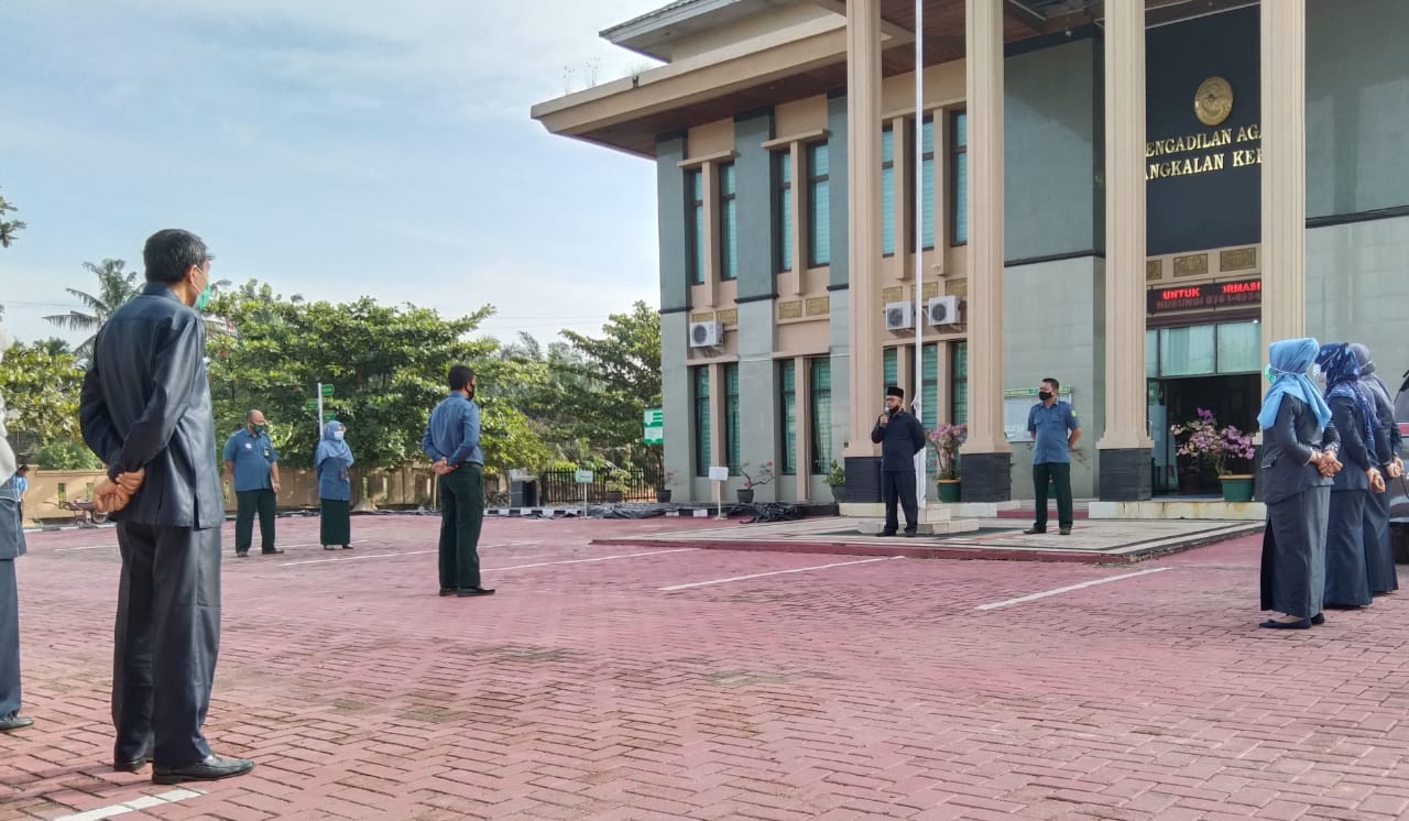 Apel pagi diikuti seluruh pegawai Pengadilan Agama Pangkalan Kerinci, mulai dari Hakim, Pejabat Struktural maupun Fungsional, Staff serta tenaga kontrak/honorer. Apel rutin setiap pagi senin, diharapkan dapat meningkatkan kedisiplinan seluruh aparat Pengadilan khususnya Pengadilan Agama Pangkalan Kerinci.